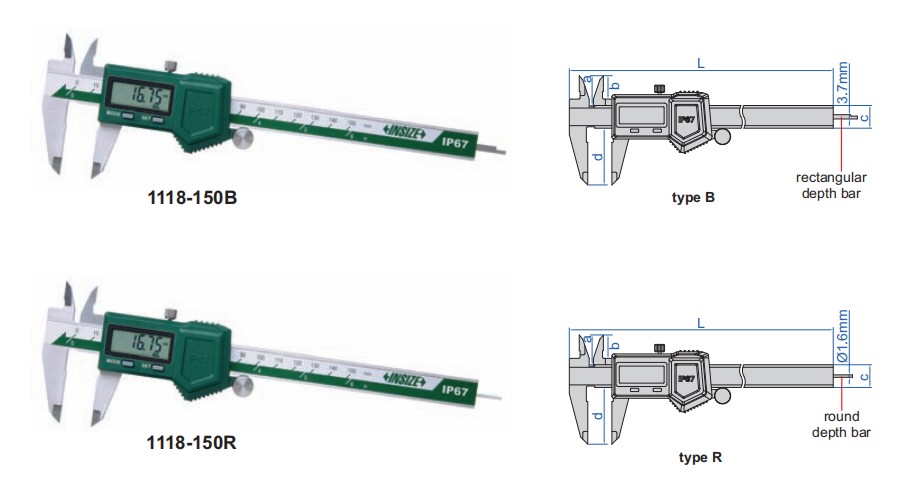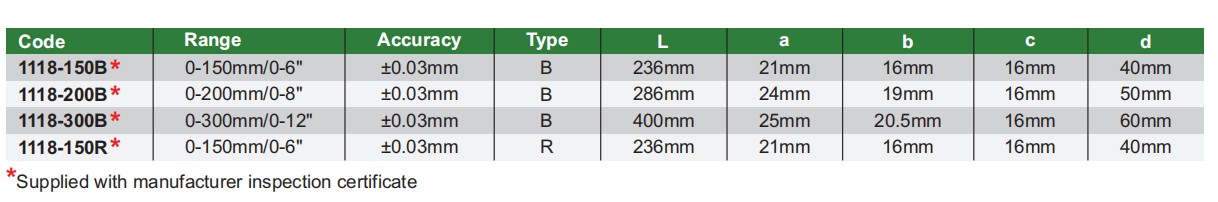 accessory set for digital calipers (code only for range 0-150mm and 0-200mm), 6144,
